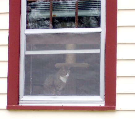 Snufkin celebrated her eleventh birthday on 9 April 2007 with a big can of non-prescription food. A week earlier, she had received some good medical news: a repeat blood test indicated that her kidney insufficiency was under control. She continues to be frisky, selectively friendly, and choosy about food, playing with but refusing to eat a mouse who wandered into the house (sorry, no picture). Her coat is thick and glossy, and the use of a FURminator brush has reduced shedding. |