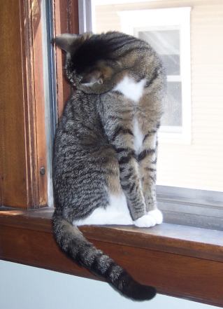 Look at the extension in that leg! Pretty limber for an eleven-and- a-half-year-old. When Snufkin strikes a pose like this, I like to call her “Leggy Mountsnuffen”. (November 2007) |